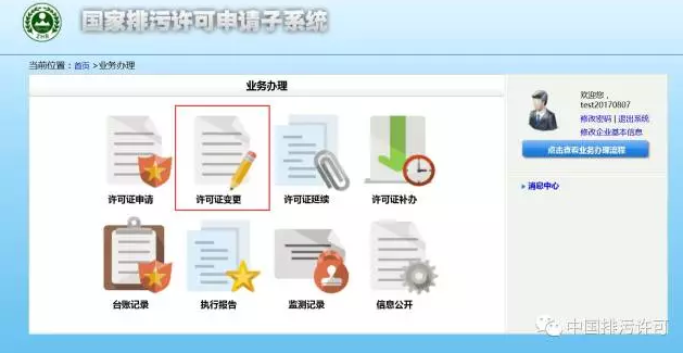 已經(jīng)取得排污許可證的排污單位可登錄國(guó)家排污許可申請(qǐng)子系統(tǒng),在業(yè)務(wù)辦理板塊選擇“許可證變更”模塊,申請(qǐng)變更排污許可證。