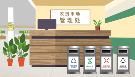 農(nóng)貿(mào)市場因為批量銷售果蔬,產(chǎn)生的廚余垃圾和其他垃圾數(shù)量較大,因此農(nóng)貿(mào)市場指引里標(biāo)注,可分段、分樓層設(shè)置廚余垃圾、其他垃圾收集容器,設(shè)置數(shù)量根據(jù)市場實際情況決定。指引中還特別強調(diào)包裝用的繩子、塑料袋等要投入其他垃圾收集容器,不得與廚余垃圾混投。