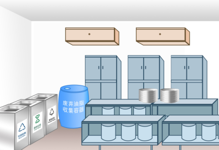 餐飲場所要提倡光盤行動,用餐區(qū)應(yīng)張貼設(shè)置相關(guān)宣傳海報;同時后廚區(qū)要設(shè)置油脂隔油池及收集容器,廢棄油脂不得倒入下水道,相應(yīng)的垃圾分類暫存點也應(yīng)配備廢棄油脂收集容器。