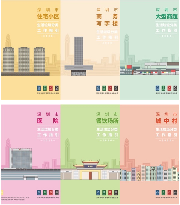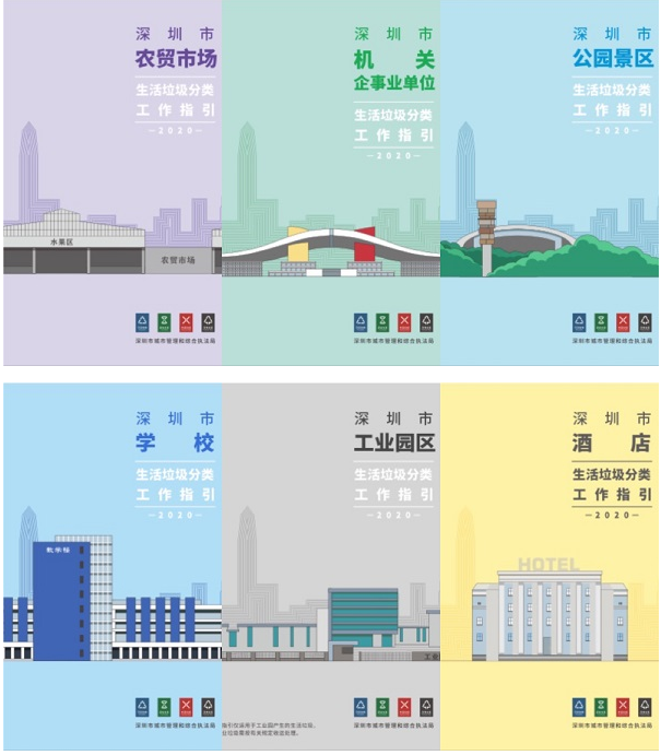 為指導(dǎo)生活垃圾分類投放與收集設(shè)施設(shè)置,推動構(gòu)建科學(xué)合理、簡便易行的分類投放體系,深圳市城市管理和綜合執(zhí)法局組織編制了學(xué)校、工業(yè)園、酒店、農(nóng)貿(mào)市場、機關(guān)事業(yè)單位、公園景區(qū)、醫(yī)院、餐飲場所、城中村、住宅區(qū)、商務(wù)寫字樓、大型商超12 類場所的生活垃圾分類投放工作指引。
