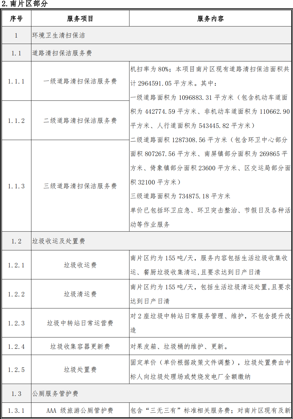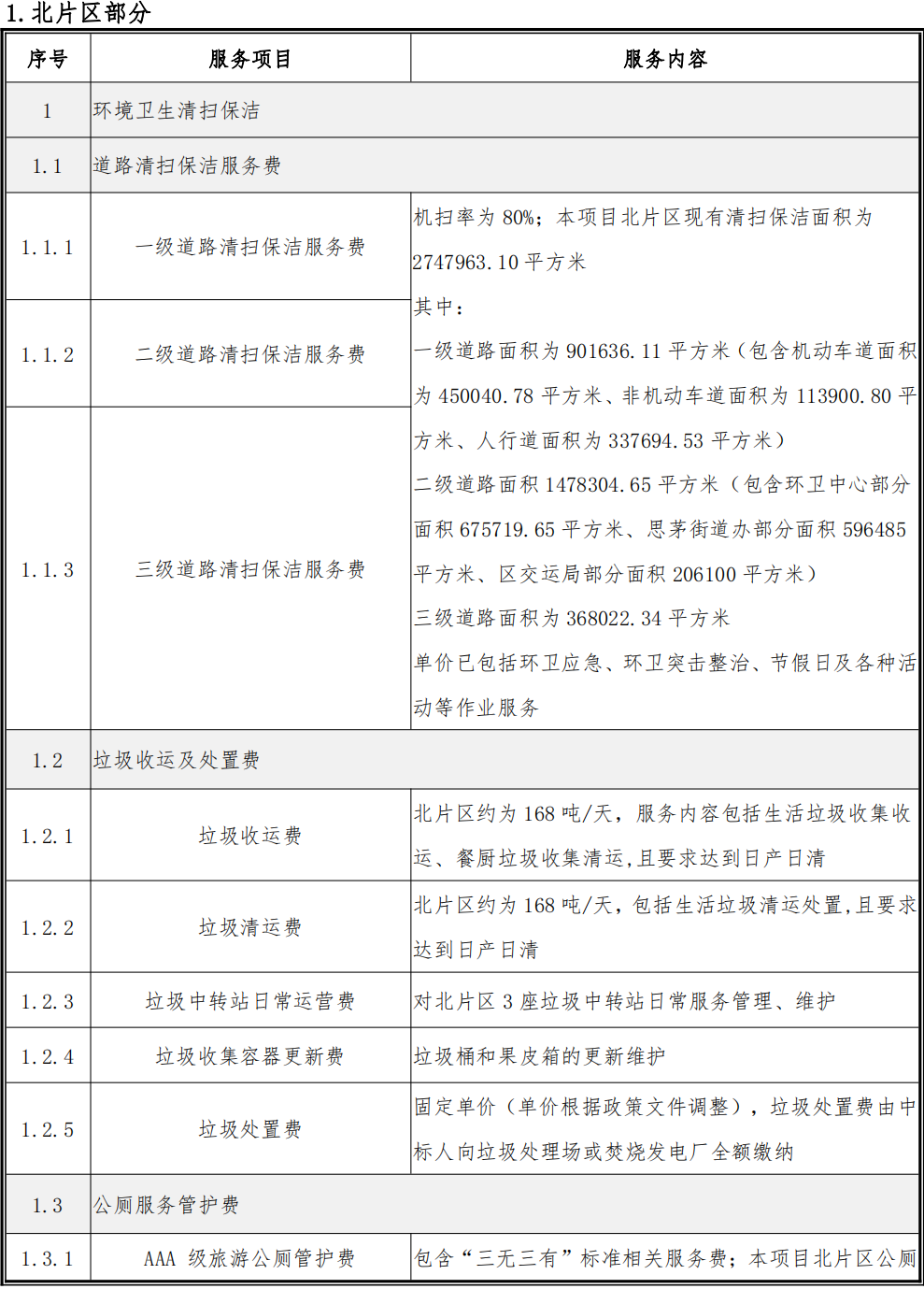 本項(xiàng)目服務(wù)內(nèi)容包括環(huán)境衛(wèi)生清掃保潔、道路及市政設(shè)施日常管護(hù)、園林綠化日常管養(yǎng)及河道保潔等。