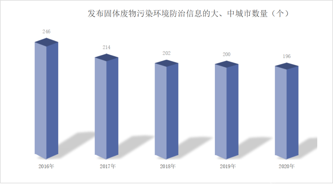 2、固體廢棄物信息化統(tǒng)計(jì)工作已經(jīng)初見成效,近年來200個(gè)左右的大、中城市固體廢物處置公報(bào)越來越準(zhǔn)確地反應(yīng)出我國固廢污染防治以及固體廢棄物處理處置工作的進(jìn)程。