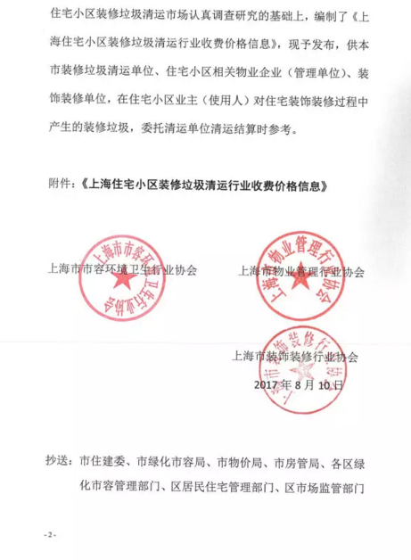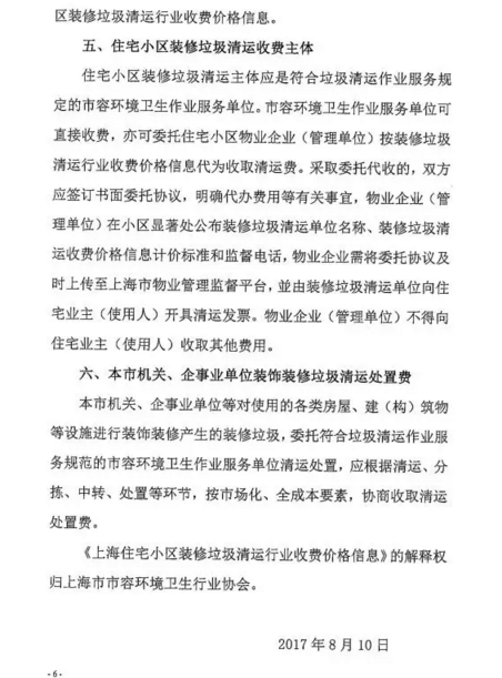 《上海市住宅小區(qū)裝修垃圾清運(yùn)行業(yè)收費(fèi)價(jià)格信息》全文內(nèi)容如下: