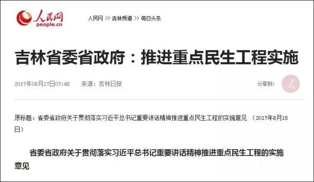 8月15日,吉林省委省政府發(fā)布了《關(guān)于貫徹落實習(xí)近平總書記重要講話精神推進重點民生工程的實施意見》。其中,圍繞貫徹落實習(xí)近平總書記重要講話精神,結(jié)合吉林省實際,提出多項實施意見。