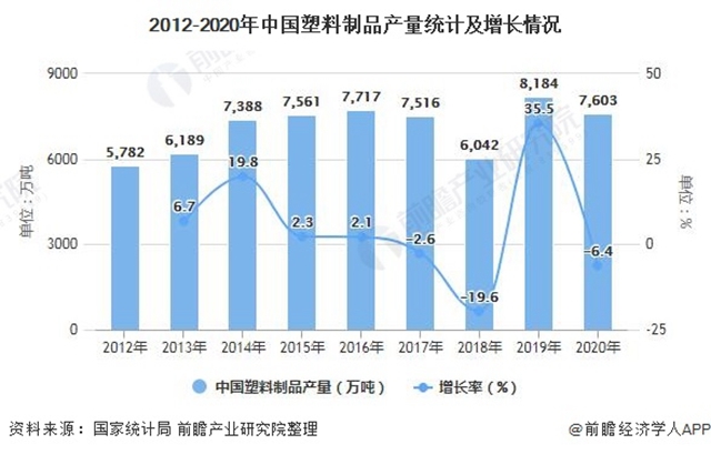 2019年我國(guó)塑料制品產(chǎn)量為8184萬(wàn)噸,塑料燃燒會(huì)產(chǎn)生有毒氣體,進(jìn)行填埋又難以分解,從而導(dǎo)致污染土壤環(huán)境。因此,再生塑料產(chǎn)業(yè)的出現(xiàn)不僅解決了環(huán)境污染問(wèn)題,也節(jié)約了能源的消耗,具有良好的發(fā)展前景。