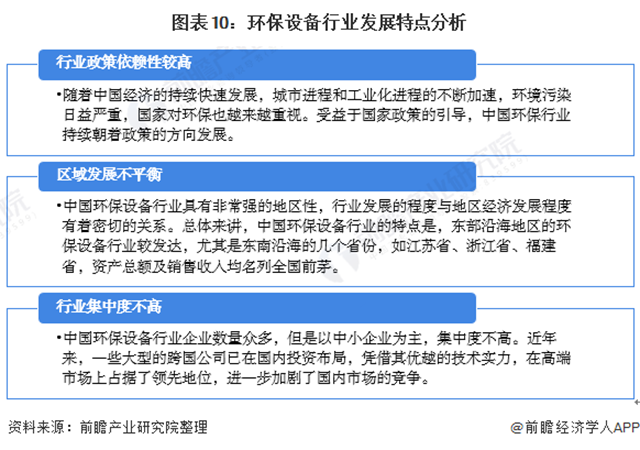 環(huán)保設(shè)備行業(yè)的發(fā)展共有三大特點,分別是政策依賴性較高、區(qū)域發(fā)展不平衡及市場分散,競爭激烈。具體分析如下:
