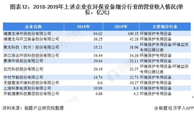 按行業(yè)分,營業(yè)收入排名前十的企業(yè)中,只有聚光科技和創(chuàng)元科技有設(shè)計到環(huán)境監(jiān)測專用儀器儀表行業(yè),但沒有企業(yè)涉及到環(huán)境污染處理專用藥劑材料行業(yè)的業(yè)務(wù)。