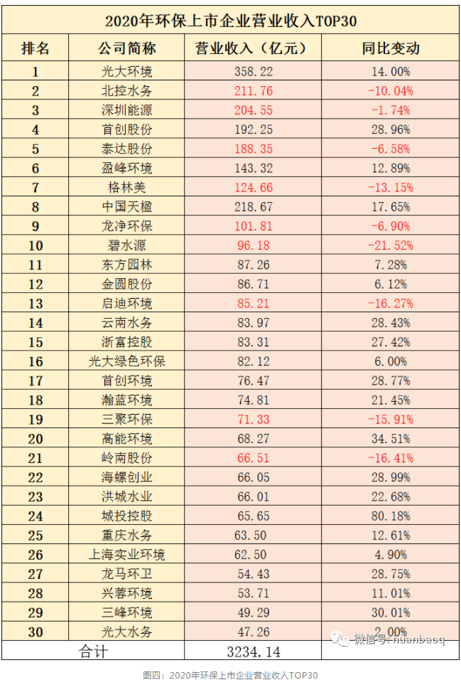 從每年?duì)I收TOP30強(qiáng)上市環(huán)企排名中,就能窺探一二(如圖四所示)。