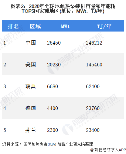 關(guān)于全球地源熱泵裝機情況,根據(jù)國際地?zé)釁f(xié)會(IGA),全球地源熱泵裝機容量最大的五個國家是:中國、美國、瑞典、德國和土耳其,占世界的71.1%。2020年我國地源熱泵裝機容量26450MW,位居全球第一位,并且是連續(xù)多年位列世界第一,地源熱泵產(chǎn)業(yè)已走在世界前列;