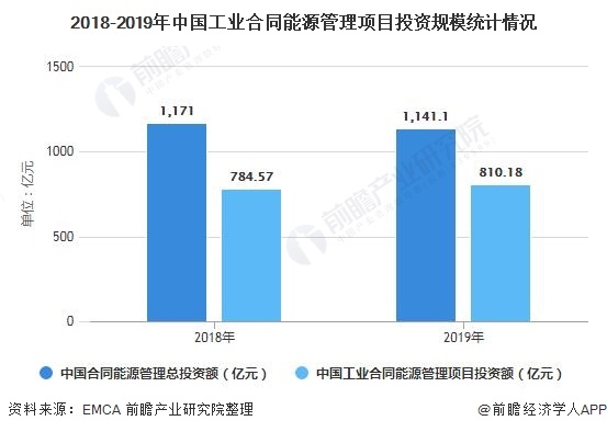 經(jīng)推算后得出2018年中國(guó)工業(yè)合同能源管理項(xiàng)目投資額為784.57億元;2019年中國(guó)工業(yè)合同能源管理項(xiàng)目投資額為810.18億元,在節(jié)能行業(yè)總投資額有所下降的情況下,工業(yè)節(jié)能服務(wù)產(chǎn)業(yè)仍然同比上年增長(zhǎng)3.26%。
