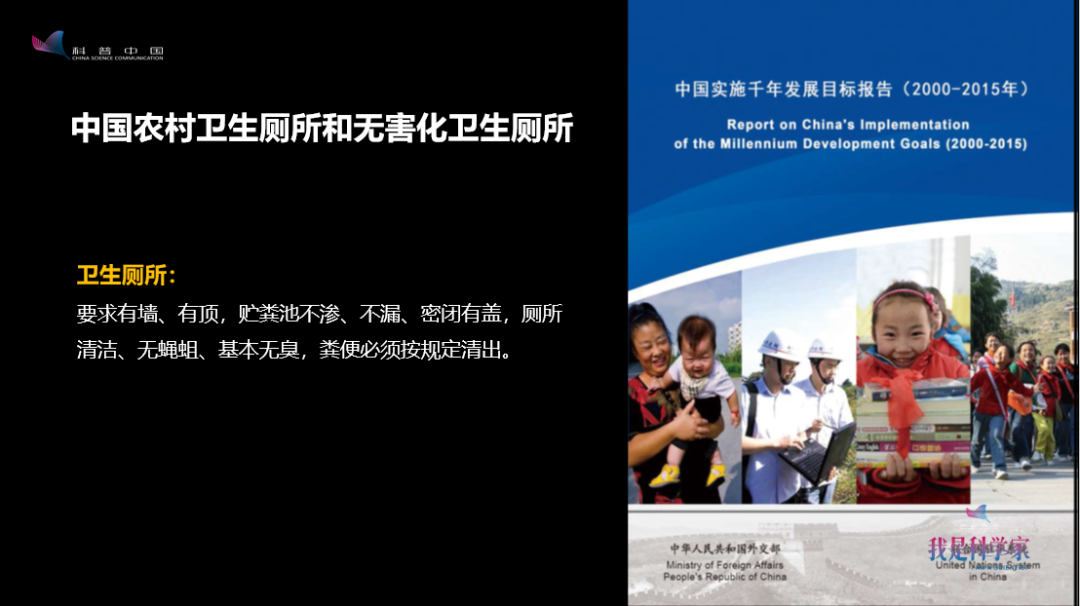 盡管在實(shí)現(xiàn)這個(gè)千年發(fā)展目標(biāo)的進(jìn)程中,最終的目標(biāo)沒有實(shí)現(xiàn),但是廁所的覆蓋率還在逐漸增加。反映到兒童死亡率上,即是死亡率的逐年下降。這是一個(gè)大好事,也給我們很多動(dòng)力去堅(jiān)持不懈地做廁所的事情。更好的消息是——我們國家在千年發(fā)展目標(biāo)里發(fā)布了白皮書,宣布中國滿足了千年發(fā)展目標(biāo)的要求。