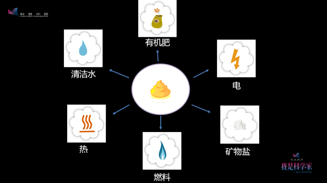 糞便可以做肥料,但是要處理,保證它安全。還有氮肥、磷肥、鉀肥,我們種莊稼的時(shí)候加了這些肥料,長成了糧食,長成了蔬菜;或者通過喂飼料,養(yǎng)成了雞鴨魚肉。這些元素都進(jìn)到你的家庭,然后90%又跑到糞便里去了。