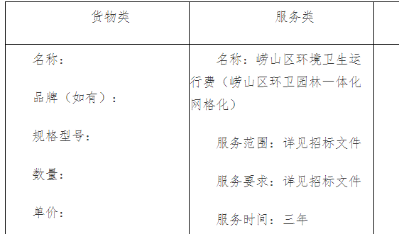 二、項(xiàng)目名稱:嶗山區(qū)環(huán)境衛(wèi)生運(yùn)行費(fèi)(嶗山區(qū)環(huán)衛(wèi)園林一體化網(wǎng)格化)