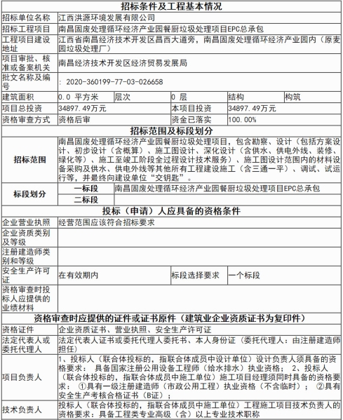 原標題:江西南昌固廢處理循環(huán)經濟產業(yè)園餐廚垃圾處理項目EPC總承包招標公告