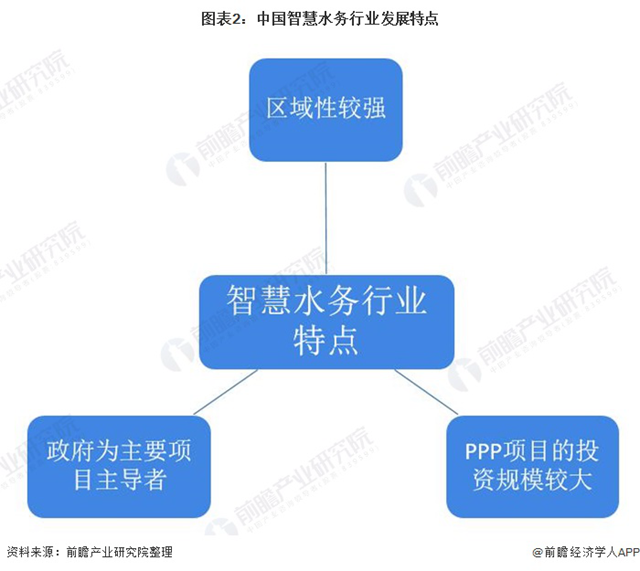 我國(guó)智慧水務(wù)行業(yè)發(fā)展特點(diǎn)主要包括:區(qū)域性較強(qiáng),大多數(shù)智慧水務(wù)項(xiàng)目的開展由政府主導(dǎo),在智慧水務(wù)項(xiàng)目中,PPP項(xiàng)目的投資規(guī)模較大。