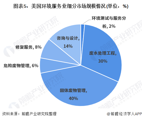 全球來看,北美市場發(fā)展良好,2020年美國環(huán)境服務(wù)業(yè)的市場規(guī)模將達(dá)到4600億元左右,廢物處置仍是環(huán)境服務(wù)項(xiàng)目的主要部分。
