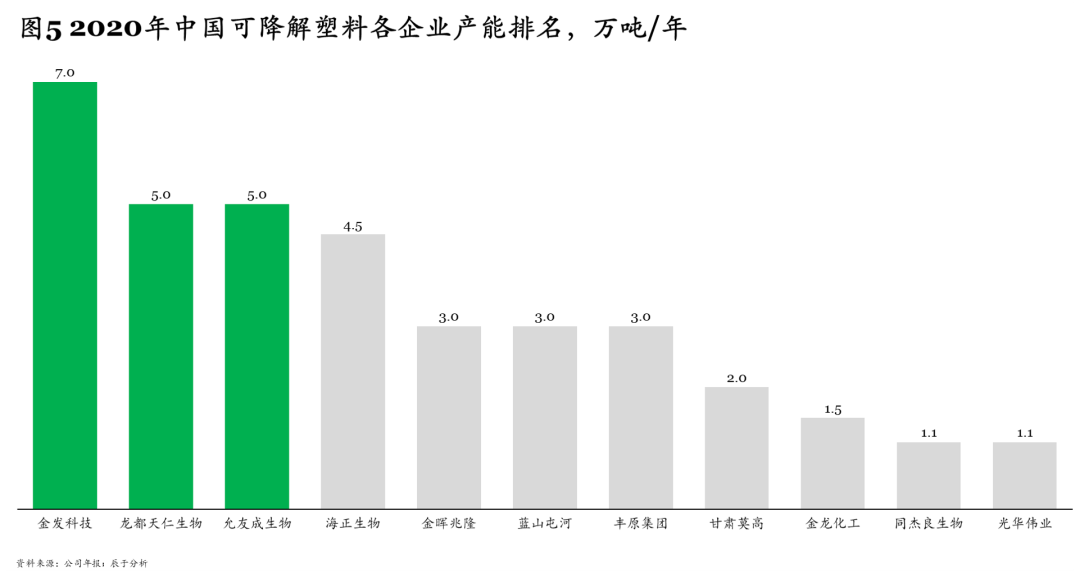 與此同時,各大廠商產(chǎn)能差距較小,市場份額排名前三的金發(fā)科技、龍都天仁生物、允友成生物2020年的產(chǎn)能也分別僅為7萬噸/年、5萬噸/年、5萬噸/年。可以說,誰能搶在前頭完成產(chǎn)能布局,誰就有可能搶占先機(jī)獲取更大份額,后來居上并非難事。