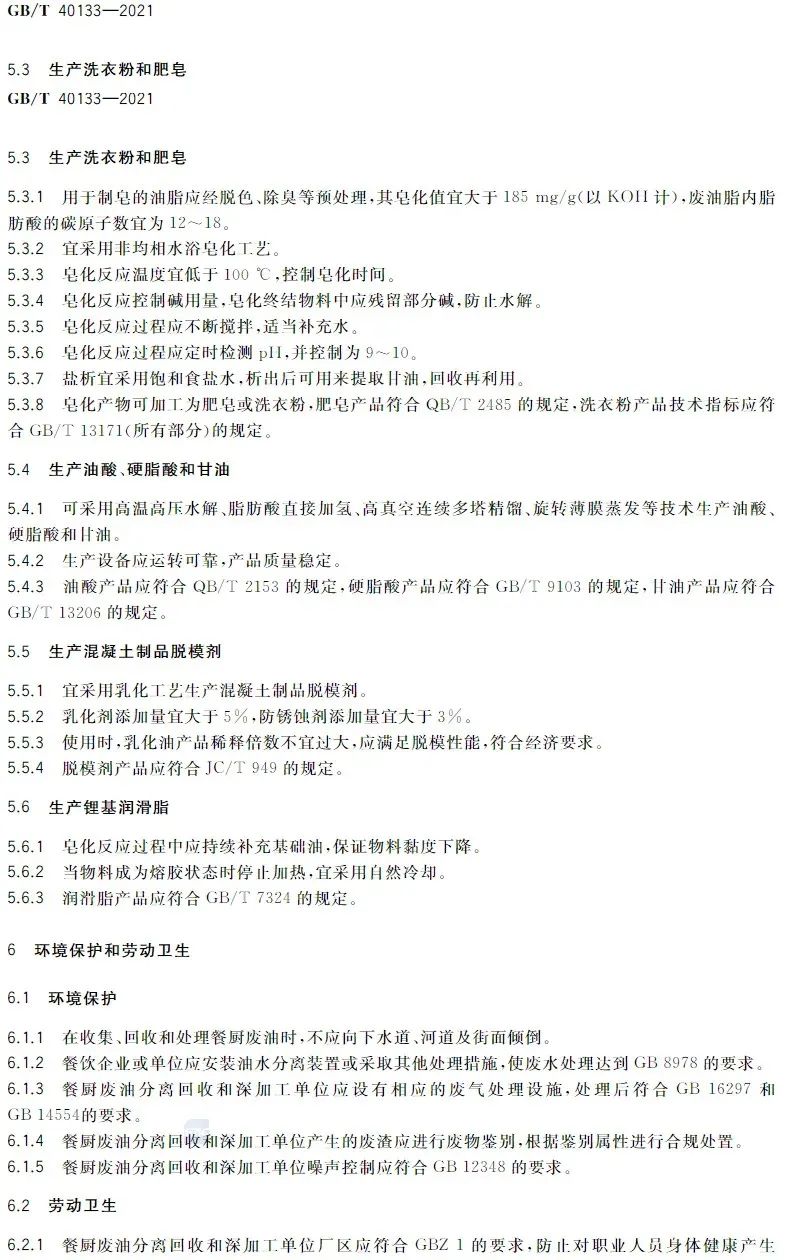 該國標(biāo)對(duì)餐廚廢油的分離回收技術(shù)、深加工技術(shù)與產(chǎn)品及環(huán)境保護(hù)和勞動(dòng)衛(wèi)生做出規(guī)范要求,是我國第一項(xiàng)餐廚廢油回收和深加工技術(shù)的國家標(biāo)準(zhǔn),改觀了餐廚廢油資源回收和深加工處于有技術(shù)、無標(biāo)準(zhǔn)的狀態(tài),對(duì)于餐廚廢油資源回收和深加工及產(chǎn)品具有深遠(yuǎn)的指導(dǎo)性意義。