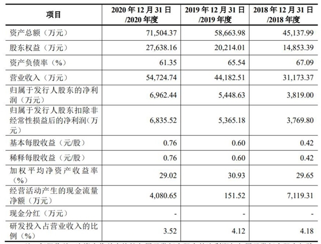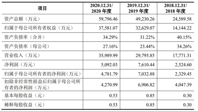 2018年至2020年,艾布魯實現(xiàn)營業(yè)收入分別為3.12億元、4.42億元、5.47億元;同期實現(xiàn)歸屬于母公司股東的凈利潤分別為3819萬元、5448.63萬元、6962.44萬元。