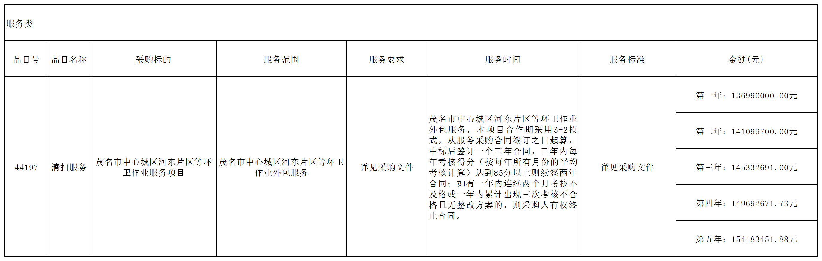 三、項(xiàng)目名稱:茂名市中心城區(qū)河?xùn)|片區(qū)等環(huán)衛(wèi)作業(yè)服務(wù)項(xiàng)目