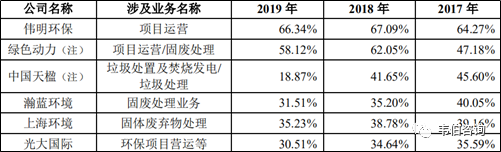 注:綠色動(dòng)力從2018年年報(bào)開(kāi)始將項(xiàng)目運(yùn)營(yíng)業(yè)務(wù)毛利率調(diào)整為披露固廢處理業(yè)務(wù)毛利率,相關(guān)披露口徑存在一定變化;中國(guó)天楹2019年垃圾處理業(yè)務(wù)毛利率變化主要系2019年1月完成固廢管理業(yè)務(wù)收購(gòu)所致。