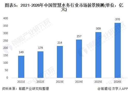 隨著我國(guó)智慧城市建設(shè)的推進(jìn),供水現(xiàn)狀、以及水務(wù)管理中存在的問(wèn)題(包括水務(wù)管理過(guò)程中控制漏損等問(wèn)題),為智慧水務(wù)營(yíng)造了發(fā)展環(huán)境。而智慧水務(wù)還有很大的市場(chǎng)可開(kāi)發(fā),如智慧水務(wù)行業(yè)的發(fā)展正在積極探索如何實(shí)現(xiàn)與人工智能的結(jié)合,進(jìn)一步實(shí)現(xiàn)人機(jī)交互的綜合應(yīng)用,未來(lái)我國(guó)智慧水務(wù)前景可觀。預(yù)計(jì)到2026年,我國(guó)智慧水務(wù)行業(yè)的市場(chǎng)規(guī)模將達(dá)到370億元。