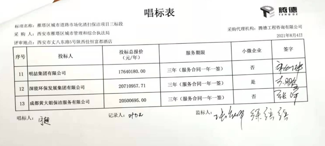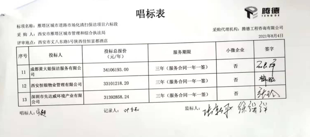 陜西省政府采購網(wǎng)消息,8月5日,西安市雁塔區(qū)城市道路市場化清掃保潔項目開標再現(xiàn)大場面。