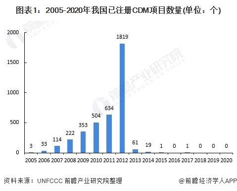 我國碳交易發(fā)展經(jīng)歷了CDM項目(2005-2012)以及碳交易體系建立(2013-)階段。2006-2013年為我國CDM項目高速發(fā)展期,期間注冊備案項目3740個,占比達99%。2013年起,受制于歐盟對CDM項目的限制,國內(nèi)CDM項目數(shù)急劇下降,根據(jù)UNFCCC數(shù)據(jù),近5年我國CDM項目注冊數(shù)幾乎為零。