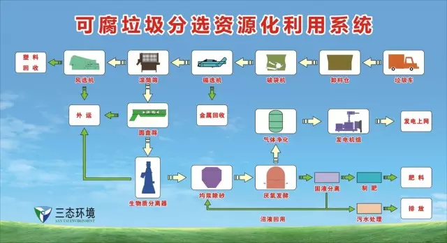 以浙江三門縣鄉(xiāng)鎮(zhèn)垃圾處理項目為案例,該項目技術(shù)最大特點為具有優(yōu)良的分選技術(shù)——二次分類自動化。可以在村民初分的基礎(chǔ)上,經(jīng)機械自動精細分選,可選出90%以上的可腐爛垃圾,彌補現(xiàn)階段人工分類的不足。前端分選分類工程是三態(tài)的研究重點之一,其開發(fā)了小型前端智能分類、大型后端機械分類。厭氧發(fā)酵工藝也是三態(tài)體系中的重點技術(shù),目前吉林項目已運行三年多,是國內(nèi)較為大型的混合垃圾厭氧發(fā)酵穩(wěn)定運行的唯一一家。