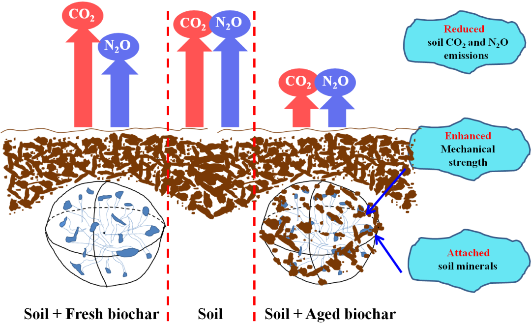 Wang, L., Gao, CC., Yang, K., Sheng, YQ., Xu, J., Zhao, YX., Lou, J., Sun, R., Zhu, LZ., 2021. Effects of biochar aging in the soil on its mechanical property and performance for soil CO2 and N2O emissions, Sci Total Environ 782, 146824.