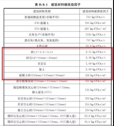 在“雙碳”目標下,來看建筑垃圾處理?!督ㄖ寂欧庞嬎銟藴省?GB/T 52366-2019)6.2.5條中規(guī)定,建材生產時,當使用低價值廢料作為原料時,可忽略其上游過程的碳過程。當使用其他再生原料時,應按其所替代的初生原料的碳排放的50%計算;建筑建造和拆除階段產生的可再生建筑廢料,可按其可替代的初生原料的碳排放的50%計算,并應從建筑碳排放中扣除。下表顯示,砂、碎石等骨料的碳排放因子比混凝土磚的碳排放小了2個數量級。