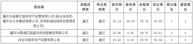 供應(yīng)商名稱:肇慶市高要區(qū)國有資產(chǎn)經(jīng)營有限公司(聯(lián)合體成員:肇慶市水務(wù)集團有限公司,深圳前海經(jīng)緯投資管理有限公司)
