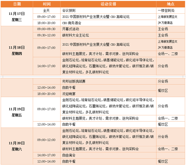 Carbontech2021將于11月18日開(kāi)啟新起點(diǎn),大會(huì)將誠(chéng)邀碳材料領(lǐng)域?qū)<?00位+,帶來(lái)時(shí)效性和參考價(jià)值的碳材料相關(guān)主題報(bào)告和分享,涵蓋金剛石、培育鉆石、碳基儲(chǔ)能、碳化硅半導(dǎo)體、碳化硅陶瓷、石墨烯、碳納米管、碳纖維及碳/碳復(fù)合材料、多孔碳材料等相關(guān)碳材料主題論壇。同期舉辦青年科學(xué)家論壇,CEO高峰論壇,圓桌會(huì)議,項(xiàng)目路演,需求對(duì)接,新品發(fā)布,逆向采購(gòu)和碳材料主題特色展覽等精彩活動(dòng)。