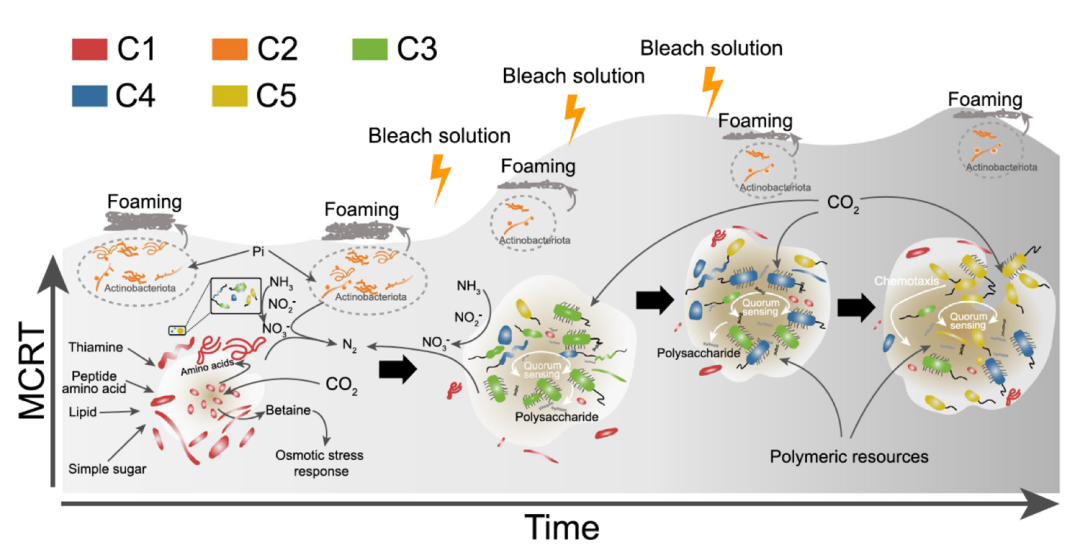 雖然分類組成在受到干擾后迅速轉(zhuǎn)變?yōu)樾聽顟B(tài),但群落的代謝特征和系統(tǒng)性能仍然非常穩(wěn)定。