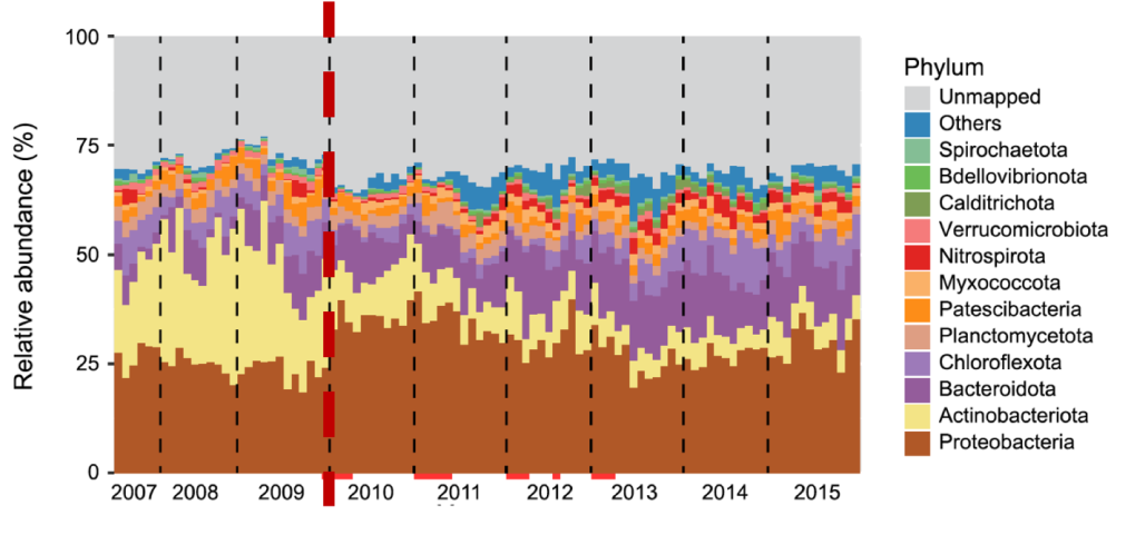 2021年10月,學(xué)術(shù)期刊Microbiome發(fā)表香港大學(xué)張彤教授團(tuán)隊(duì)的相關(guān)研究成果,他們對(duì)香港的沙田污水處理廠進(jìn)行了長(zhǎng)達(dá)9年的跟蹤研究,他們的研究成果進(jìn)一步加深了我們對(duì)活性污泥微生物群落演變的認(rèn)識(shí)。