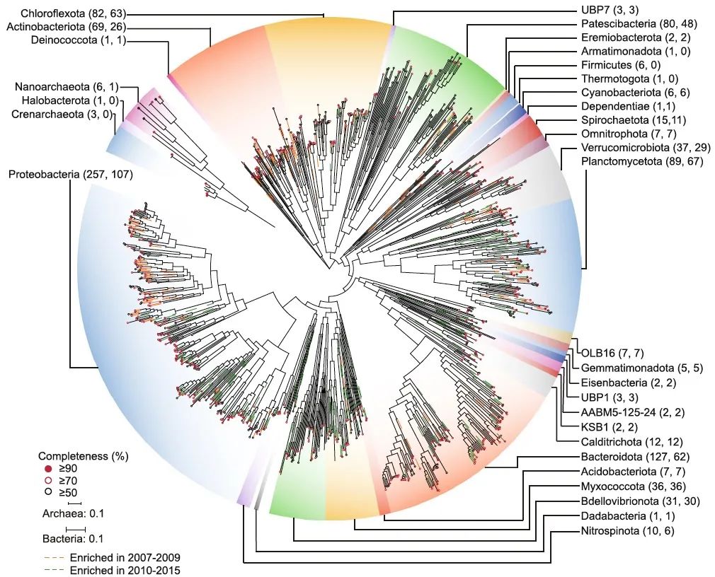 從920個(gè)宏基因組拼接基因組得到的種系演化圖