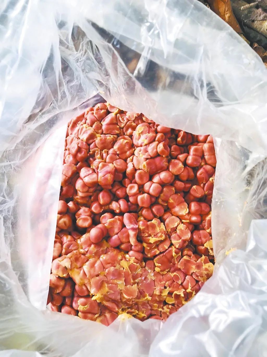 圖為嘉義縣巡查過程中,發(fā)現(xiàn)作為豬飼料的曼妥思糖果廢料。