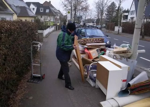有人說了,德國人這樣扔家具,街上豈不是亂啦。嘿嘿,其實(shí)是這樣的,每個(gè)德國城市規(guī)定不同,但一般都是在固定時(shí)間允許扔,或者是和收家具的工人約時(shí)間。家具在街上不會呆多長時(shí)間,工人就來收了。