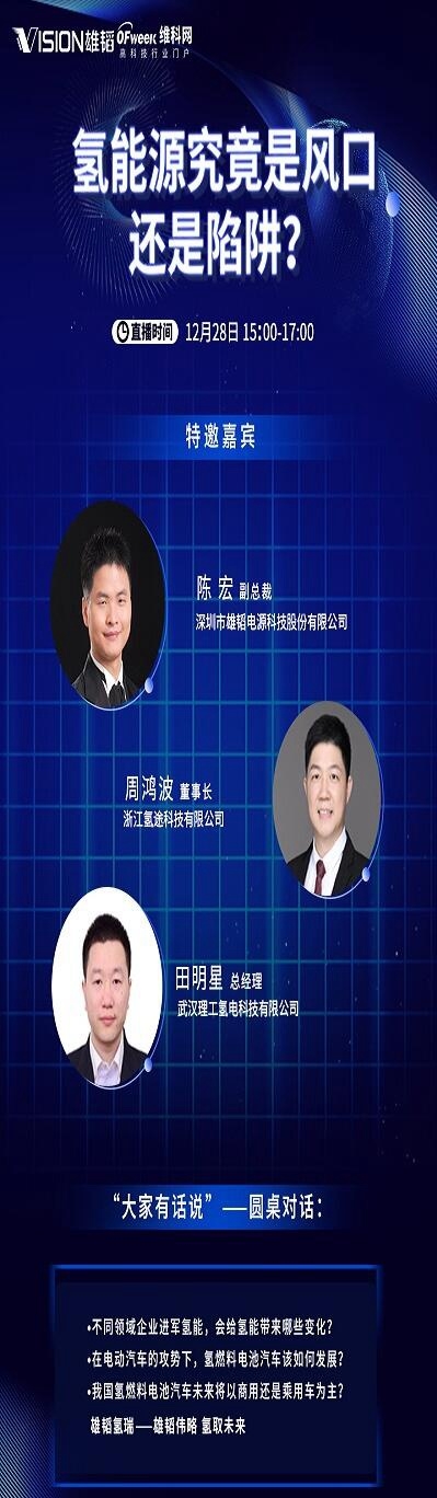 但是,當(dāng)前氫燃料電池也存在成本高企、配套設(shè)施欠缺、技術(shù)不夠成熟等痛點(diǎn)。這一背景下,由專注于氫能電堆研發(fā)與生產(chǎn)的雄韜氫瑞主辦,OFweek維科網(wǎng)氫能承辦的“中國(guó)氫能發(fā)展研討會(huì)”,將于2021年12月28日在OFweek在線直播平臺(tái)舉辦。