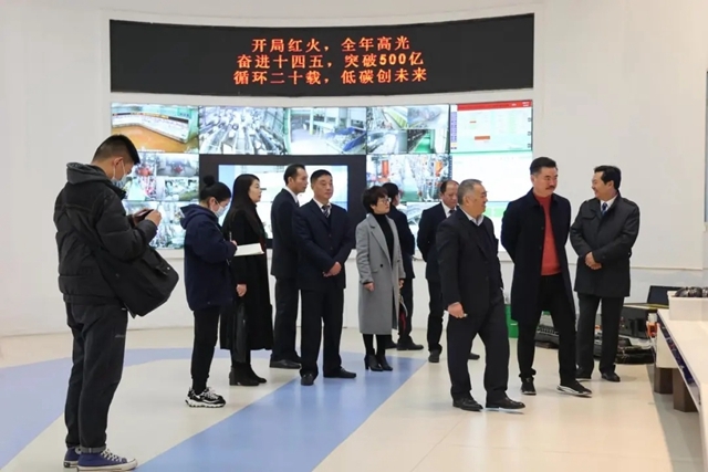 新洋豐楊才學董事長一行(左三)參觀格林美三元材料制造中心