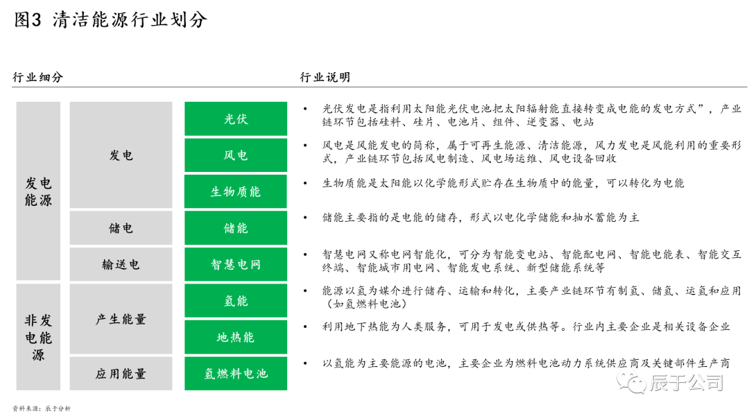 作為一家聚焦于綠色發(fā)展領(lǐng)域的專業(yè)咨詢機構(gòu),結(jié)合以往項目經(jīng)驗以及業(yè)內(nèi)習(xí)慣,辰于對綠色環(huán)保行業(yè)范圍進行了明確劃分,目前已經(jīng)持續(xù)跟蹤50多個細分領(lǐng)域(見圖1)。有意思的一點是,過去的環(huán)保行業(yè)范圍一般是指包含供水、各類污染物末端處置和治理以及環(huán)境監(jiān)測在內(nèi)的傳統(tǒng)環(huán)保領(lǐng)域,雙碳戰(zhàn)略提出后,當(dāng)人們談到“環(huán)?!睍r,更多是指“綠色環(huán)?!钡母拍?,節(jié)能、清潔能源、雙碳業(yè)務(wù)等行業(yè)也被納入。
