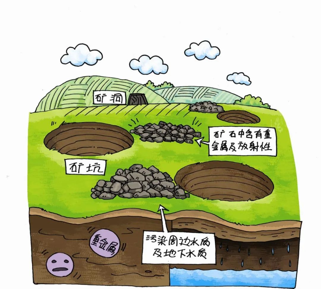 礦山固體廢物是在采礦和選礦過程中產(chǎn)生的沒有工業(yè)價(jià)值的礦物,例如尾礦、廢石以及煤矸石等。這些廢物通常都含有重金屬等污染物。另外,還會(huì)有選礦過程加入的一些表面活性劑、酸或者堿等危害環(huán)境的成分。有些礦山固體廢物還有一定的放射性。它們通常會(huì)堆在礦場附近,既侵占良田,又在長期的風(fēng)化及雨水的淋洗下,使周邊的地下水質(zhì)變壞,特別是酸性水或含有重金屬的污水,污染周邊環(huán)境。