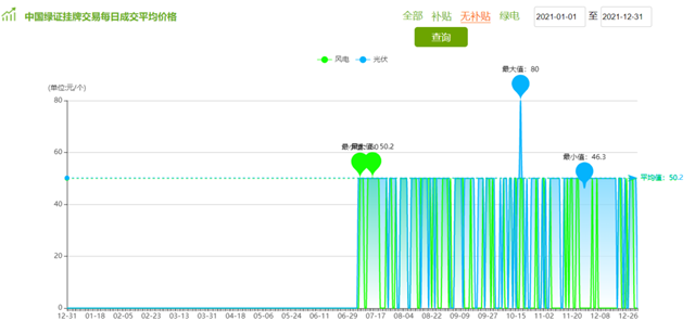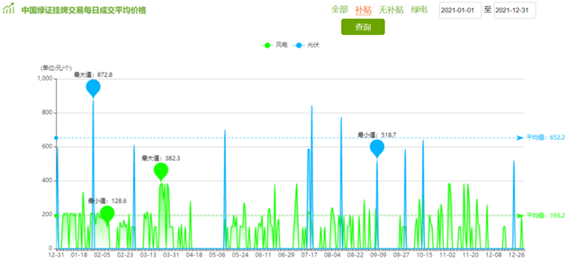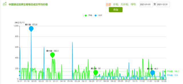 圖7 我國2021年風(fēng)電和光伏綠證成交價格對比