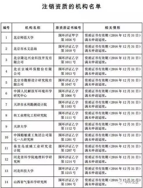 這次被注銷環(huán)評(píng)資質(zhì)的機(jī)構(gòu)包括:北京師范大學(xué)、天津大學(xué)、上海大學(xué)、上海師范大學(xué)、華東理工大學(xué)、華中科技大學(xué)、武漢大學(xué)、西南交通大學(xué)等國(guó)內(nèi)著名高等院校,以及十多家較有實(shí)力的研究院所,具體名單詳見(jiàn)附件。