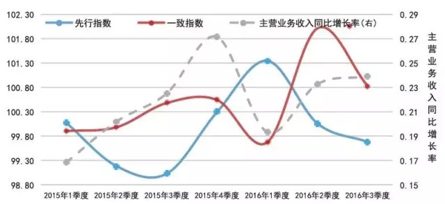 5. 環(huán)保產(chǎn)業(yè)對(duì)經(jīng)濟(jì)增長的貢獻(xiàn)顯著正向。相對(duì)于GDP增長率自2015年1季度至2016年3季度的持續(xù)下降,以及2015年DRC工業(yè)景氣指數(shù)和中經(jīng)工業(yè)景氣指數(shù)均呈下降趨勢所呈現(xiàn)出的經(jīng)濟(jì)下行,主營環(huán)保上市企業(yè)一致指數(shù)呈現(xiàn)出波動(dòng)上升的趨勢。