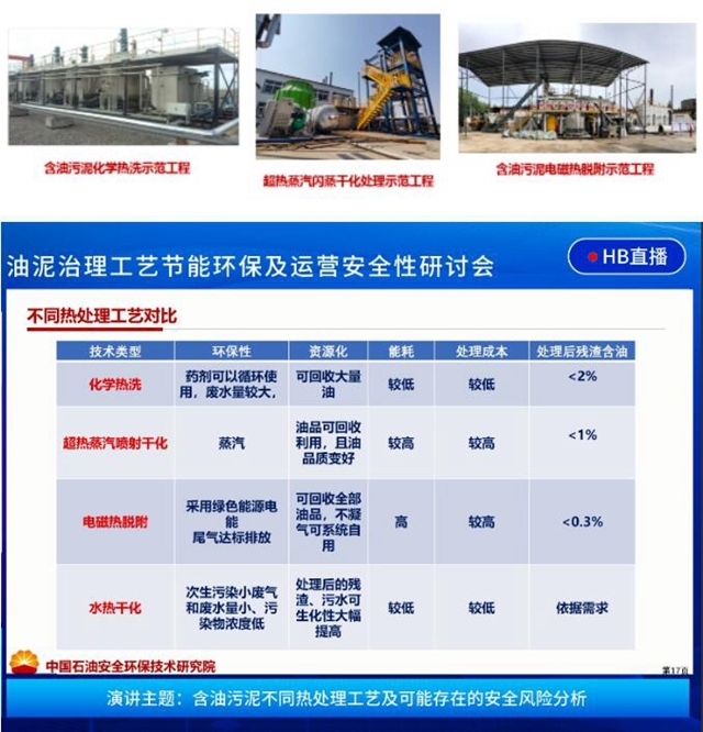 在《含油污泥不同熱處理工藝及可能存在的安全風(fēng)險(xiǎn)分析》的主題演講中,劉光全詳細(xì)介紹了中國(guó)石油集團(tuán)安全環(huán)保技術(shù)研究院開發(fā)的熱處理工藝,包括含油固廢化學(xué)熱洗、超熱蒸汽噴射干化、熱脫附、水熱干化等,并對(duì)幾種技術(shù)的特點(diǎn)及安全性進(jìn)行了闡述與分析。