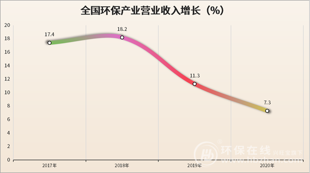 并且不可否認(rèn)的是,隨著“十三五”規(guī)劃目標(biāo)的圓滿完成,環(huán)保產(chǎn)業(yè)規(guī)模的增速確有波動(dòng)。來(lái)自中國(guó)環(huán)保產(chǎn)業(yè)協(xié)會(huì)的《中國(guó)環(huán)保產(chǎn)業(yè)發(fā)展?fàn)顩r報(bào)告(2021)》顯示,2020年全國(guó)環(huán)保產(chǎn)業(yè)營(yíng)業(yè)收入增長(zhǎng)約為7.3%??梢詫?duì)比一下,增速放緩的信號(hào)還是比較明顯的。
