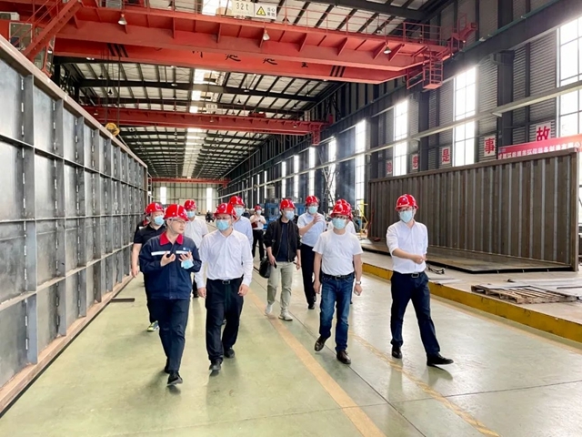 北控水務西部大區(qū)總工程師許俊儀、北控水務村鎮(zhèn)事業(yè)部副總經(jīng)理史春和副部長周廣明、北京市政院成都分院院長陳建豪、四川發(fā)展環(huán)境科學技術(shù)研究院總經(jīng)理張愛民和副部長趙栗笠一行在中建環(huán)能副總裁呂志國、技術(shù)中心副主任肖波等人陪同下,先后參觀了中建環(huán)能西部制造基地和金堂趙鎮(zhèn)項目。
