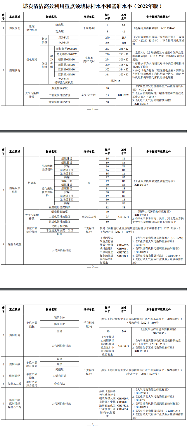 國(guó)家發(fā)展改革委等部門關(guān)于發(fā)布《煤炭清潔高效利用重點(diǎn)領(lǐng)域標(biāo)桿水平和基準(zhǔn)水平(2022年版)》的通知