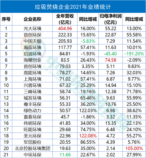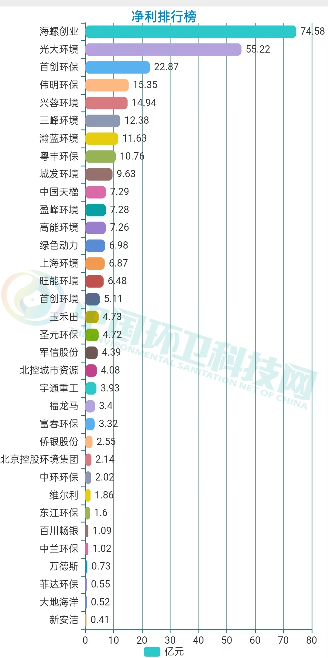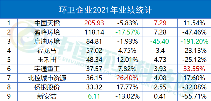 工程建設方面,建成投運項目91個,建成完工項目8個;新開工項目51個,完工并交付的環(huán)境修復服務6個、垃圾分類服務1個、EMC項目4個以及EPC項目9個。2021年,光大環(huán)境累計處理生活垃圾43,452,000噸,處理危廢及固廢269,000噸,提供綠色電力22,271,602,000千瓦時,可供18,559,000個家庭一年使用,相當于節(jié)約標煤8,909,000噸,減少二氧化碳排放20,211,000噸。同期處理污水1,698,710,000立方米,處理垃圾發(fā)電廠滲濾液9,635,000立方米,減少COD排放740,000噸。在凈利榜中,海螺創(chuàng)業(yè)以74.58億元的歸母凈利潤雄踞榜首。海螺創(chuàng)業(yè),2013年12月在香港聯(lián)合交易所主板上市(股票代碼:00586.HK),是一家提供節(jié)能環(huán)?!耙粩堊印苯鉀Q方案的大型企業(yè)集團,產業(yè)涉及節(jié)能、環(huán)保、新型建材、港口物流四大類,業(yè)務涵蓋生活垃圾處理、固廢危廢處置、黑臭水體治理、新型建材、港口貿易、余熱發(fā)電、高效節(jié)能立磨等。細分業(yè)務板塊,2021年在垃圾處置領域,海螺創(chuàng)業(yè)營收57.44億元,同比增長19.38%,占全部營收比重為68.78%。▲ 海螺創(chuàng)業(yè)分業(yè)務收入年報披露,2021年,海螺創(chuàng)業(yè)垃圾發(fā)電業(yè)務板塊共接收生活垃圾約540萬噸,處置生活垃圾約456萬噸,上網電量約16.65億度,按照入爐量計算的平均噸上網電量約為365度,較去年同比提高19度。目前,海螺創(chuàng)業(yè)已成功取得貴州清鎮(zhèn)、重慶巫山、吉林洮南、河北圍場、越南春山等13個項目以及并購的10個項目,共計23個焚燒發(fā)電項目,涉及產能規(guī)模約567萬噸/年。3月30日,海螺創(chuàng)業(yè)分拆海螺環(huán)保成功在香港聯(lián)合交易所主板上市。日前,又宣布擬分拆海創(chuàng)綠能于上海證券交易所獨立上市。在大部分上市企業(yè)都實現(xiàn)盈利的背景下,博世科和啟迪環(huán)境成為唯二虧損的企業(yè),前者虧損5.15億,后者的虧損更是達到了驚人的45.4億。博世科,是一家位于廣西的環(huán)保企業(yè),2015年,在深交所創(chuàng)業(yè)板上市,業(yè)務領域重點為工業(yè)環(huán)境治理、城鄉(xiāng)環(huán)境、土壤環(huán)境修復、固廢處置與危廢處置、智慧環(huán)衛(wèi)、環(huán)境服務業(yè)等。對于虧損原因,博世科在年報中披露主要是受到疫情反復、經濟下行、行業(yè)競爭加劇、市政項目結算和老舊項目回款不及預期等內外部發(fā)展阻力綜合影響。啟迪環(huán)境,這個曾經的固廢領域龍頭企業(yè),最近頻頻登上環(huán)衛(wèi)科技網的頭條,對于它已無須過多贅述。可以說,它的虧損早就在業(yè)內人士的預料之中。而對于虧損原因,啟迪環(huán)境在年報中這樣解釋:“系公司對現(xiàn)有資產、項目進行全面梳理,部分項目擬戰(zhàn)略性退出,公司根據(jù)《企業(yè)會計準則》規(guī)定對相關資產計提減值所致。不過,該虧損對公司當前經營及償債能力未產生重大影響?!?/span>具體來說,原因包括對已停建項目、擬退出項目計提資產減值;對資產運營效率較低、不能持續(xù)運營和公司整體戰(zhàn)略涵蓋不到的項目進行退出、轉讓處置;對部分款項回收存在實質性障礙的應收賬款、其他應收款、長期應收款及應收票據(jù)計提信用減值損失等。如今,博世科于2021年完成混改,廣環(huán)投成為其控股股東。啟迪環(huán)境與城發(fā)環(huán)境的合并雖然存在客觀上的“不確定性”,混改終究會完成。我們也希望完成混改后的兩家企業(yè),能夠迅速走上正軌,扭虧為盈。這36家上市企業(yè)中有9家公司主營業(yè)務為環(huán)衛(wèi)板塊,中國天楹、盈峰環(huán)境和啟迪環(huán)境領跑營收榜,中國天楹、盈峰環(huán)境和玉禾田則在凈利榜上名列前茅。中國天楹,早在1994年就登陸深交所主板A股。其以垃圾焚燒發(fā)電、城市環(huán)境服務、環(huán)保裝備制造為壓艙石,打通了從前端清掃、中轉到分選、末端處置的城市環(huán)境服務全產業(yè)鏈。2021年,在城市環(huán)境服務板塊,其營業(yè)收入達到90.84億元,占全部營收比重44.11%。2021年,中國天楹中標了烏海市濱河新區(qū)環(huán)衛(wèi)作業(yè)市場化運營項目,如皋長江鎮(zhèn)道路、河道保潔、垃圾清運及農村環(huán)境整治服務外包項目,張北縣草原天路環(huán)境衛(wèi)生服務政府采購項目以及任丘市城鄉(xiāng)環(huán)衛(wèi)一體化農村部分對外承包項目等多個城市環(huán)境服務項目,為境內18個省市自治區(qū)35個城市提供了專業(yè)的城市環(huán)境服務。盈峰環(huán)境,于2000年在深交所主板A股上市。其主營業(yè)務包括環(huán)衛(wèi)服務和環(huán)衛(wèi)裝備,為客戶在城鄉(xiāng)保潔消毒、生活垃圾分類、固廢垃圾清掃運處、環(huán)衛(wèi)人員管理、餐廚垃圾收運、渣土運輸監(jiān)管、滲濾液處理、智慧城市建設等領域提供全新維度的全生命周期物聯(lián)網集成應用解決方案和智慧平臺運營服務;環(huán)衛(wèi)裝備則覆蓋5G環(huán)衛(wèi)機器人、無人駕駛環(huán)衛(wèi)車、智能小型環(huán)衛(wèi)機器人、新能源環(huán)衛(wèi)裝備、垃圾收轉運設備、分體站裝備、環(huán)衛(wèi)清潔裝備等。年報披露,2021年,盈峰環(huán)境環(huán)衛(wèi)裝備銷售額實現(xiàn)62.12億元,總銷售量16,521臺,銷售額連續(xù)21年穩(wěn)居行業(yè)第一的位置。環(huán)衛(wèi)服務營